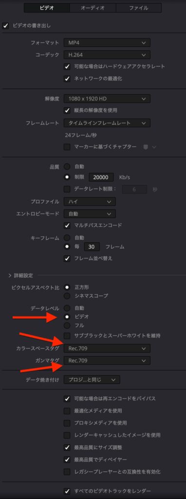 - 出力ラインカラースペース を 「Rec.709 (Scene)」 に変更